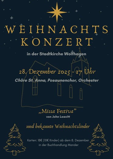 Beim Weihnachtskonzert werden der Posaunenchor Wolfhagen, Kinder- und Jugendchöre, Projekt- und Kirchenchor sowie das Kammerorchester zu hören sein.